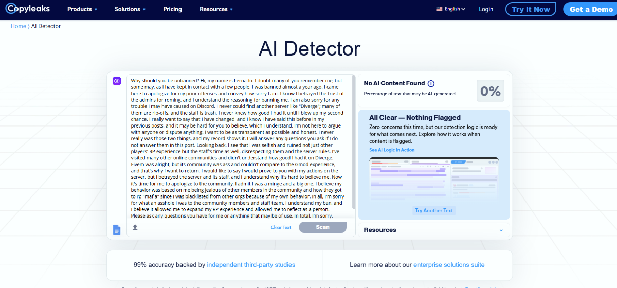 2. Is this an question or something? Cause I didn't gpt any of it. You can write a whole essay and put it into ChatGPT, Zero, and it will 9/10 flag something over 200 words. We can hop on a call, which I know you probably don't want to do, but I can write it in front of you to prove it's not AI. The only AI I have is the Grammarly spell check, but I also see how you think it's AI because many players use it to be lazy in forums or WL apps.
