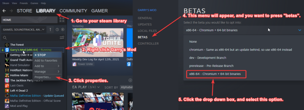 This will be a quick and simple guide in regards to fixing any issues you may have when joining the server. Most on server issues can be fixed by reconnecting / restarting Garry's mod. Common fixes or links I'll be referring to here: Verify game files: Download our content here: You can find the content for our MafiaRP - Southside server at the link below: https://steamcommunity.com/sharedfiles/filedetails/?id=2238810677 Possible Issues: Q: I see errors/missing textures? A: Attempt the following fixes - Ensure you have adequate hard drive space. - Verify game files - Subscribe to our content. - If it's the vehicles turn model detail quality to high in settings. Q: I don't have the Map A: Attempt the following fixes - Ensure you have adequate hard drive space. - Verify game files. - Subscribe to our content. Q: I crash on join when loading Workshop files? A1: You should verify game files A2: Ensure you have enough storage space on your hard drive. Try deleting some files. Q: I don't see the queue when loading in A1: Go to your settings. Game settings and turn ON HTML loading screens Q: I get suck between 10-15 fps sometimes when on the server for a while A1: Type ' record 1; stop ' in console, your game will freeze for a moment and your FPS will shoot back up. Q: The cars are all broken. A: Go into your Gmod settings and set the Model Detail Quality to High. Q: I see a black loading screen? A: This is normal during high traffic hours. You should simply wait about 10 minutes to see if it loads. If it does not load after 10 minutes simply reconnect to the server. You can do this by opening console and typing retry. Q: I am seeing missing textures/errors, even though I have loaded them fine before A: Delete the 4000 folder -> Program Files (x86)\Steam\steamapps\workshop\content\4000 Q: How can I play on Gmod x64? A: Q: How can I improve my FPS and/or load times? A: If you have an SSD we highly recommend you put Garry's mod on the SSD, it significantly improves load times. Q: I can't connect to the server after several tries, I can connect to other servers fine and no other fixes in this guide work. A: 1. Go to your steam library 2. Go to Garry's mod properties and click on launch settings it should be on the first page 3. Type this +clientport 27006 A2: Or you can use a VPN and connect to the server. Q: I can't see models or textures / models are messing up and t-posing and no other fix in this guide works. A: Unsubscribe from all other addons and only subscribe to Diverge content addons Q: No other fixes in this guide work including un-installing and re-installing Gmod, deleting addon folders, verifying, etc A: Factory reset gmod using the bat file in the following folder C:\Program Files (x86)\Steam\steamapps\common\GarrysMod If re-validating your files fail you can also delete the following directory from your PC Steam\steamapps\common\GarrysMod\garrysmod\data\nsicon\mafiarp And it will regenerate them Understand that doing a fresh install of Garry's mod can sometimes work but ensure you delete your addons (unsubscribe from the ones you want to delete before emptying the folder) and ensuring you delete the left over garrysmod folder. Most issues you encounter will be client side, meaning it happens to you and only you. Please ensure you attempt to verify files or any other of the possible fixes above. If none work you should then make a support ticket on our discord1 point
