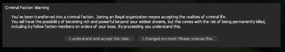 Faction Conflict Guidelines Last updated 27/09/2025 The following document serves to outline the rules and regulations of conflicts between factions, how they work, and information to be aware of. This thread is most relevant to faction leaders. What is a conflict? A Conflict occurs when two or more factions recognize a transgression or incident which can lead to tensions and possible fighting. Conflicts are best resolved through diplomacy and sit downs to determine what wrongdoings occurred and who is at fault. For all claims of transgressions evidence would be required. The incident should be recorded with a plethora of context around it. All conflicts must follow the proper escalation steps as described below or their validity will be ignored and users can receive bans for breaking rules in an attempt to press a false conflict. Alliances and Agreements Alliances or allied factions can come to the aid or defence of your faction when you find yourself in an active conflict, fighting on your behalf, providing security for sit-downs or filling a plethora of other roles. Agreements like alliances or conflict resolution agreements can be made with other factions to define the terms of a business dealing. Such as the creation of a district, creation of an alliance, outline of set territory with an enemy or an agreed amount of tax to resolve a conflict. An agreement document (OOC document) is created, signed by both sides and is presented jointly to server Upper Administration to be ratified as binding. Alliances are limited to a maximum of 5 factions. (Mega alliances may not team up together, defeats the point of the limit) (This limit includes districts, a district is regarded as an ally, a vassal you own, but an ally nonetheless) This will increase amount of diplomacy Roleplay and prevent the server from splitting into two massive alliances (Boring!) [Added benefit of reducing number of puppet factions] Territories A Territory is a section of the city divided by certain criminal boundary lines. If your alliance controls more than half the buildings in a given territory the territory can be considered 'belonging' to your alliance. Other areas where no one alliance controls more than half is 'contested'. If your alliance owns a territory you may create territory rules and include them in your alliance agreements to dictate realistic territory rules. (ex: No muggings, no selling drugs in public, etc) These rules must be approved and ratified by Server Management. More than half means over 50%, so 3/4, not 2/4 for majority. Territory map (subject to change in the future) Possible reasons for conflicts Here are just a few examples of scenarios that can cause a problem between factions. Disrespect Disrespect between bosses or capos/made men while being quite minor and would not warrant any real violence can still sour relations between the high commands of competing factions. A sit-down would be effective at resolving this. Excessive targeted muggings / muggings in territory Being targeted for muggings or having muggings occur in your faction/alliance’s pre-agreed upon territory could be a clear provocation for escalations in conflict. A sit down and possible tax or a demand to turn over the perpetrator(s) would be logical for such offences. Impeding business Attempting to interfere or impede on another faction's business. For example if you have a pre signed agreement to not host events or sell certain products in their territory and you knowingly push to their customer base regardless or make back door deals violating previous no trade agreements you could be liable for impeding on the other faction's business. Murder For example, if a man in your organization left the faction without consent in order to join another faction and you were to murder him for that, his new faction could take issue with the killing and demand repayment for the loss of their earner. A sit down before the hit would clear up any confusion and get you the go ahead to perform the kill. [And Many more reasons possible] Sit-downs and meetings Sit downs and meetings are the most effective way of bringing a conflict under control or even bringing it to an end by defining what occurred and who is owed what in terms of compensation. These meetings are also beneficial for laying out agreements, deals and territory lines BEFORE they become an issue, anticipating problems and solving them through diplomacy is the mark of a good leader, as conflict only brings death and a pause in the business of making money. Types of sit-downs Internal sit-downs Inter-Alliance sit-downs Standard Faction sit-down Alliance wide sit-down Internal sit-downs occur inside your given faction. These are between two members of the same faction generally mediated by the Don or underboss. No escalation, UA reporting or recording is mandatory in these cases. Inter-Alliance sit-downs occur between two factions of the same Alliance, usually mediated by an Alliance leader or uninvolved third party mediator. They aim to resolve inter alliance disputes and keep the alliance running peacefully, they also enforce the alliance agreement. UA reporting and recording is optional; if the issue persists and escalation is required then it becomes mandatory. Standard Faction sit-downs occur between two singular factions (no allies involved). They aim to bring and solve grievance two factions from other alliances may have with one another, this is a one-on-one encounter. UA reporting on the initial issue / first sit-down is optional, recording is mandatory. Should the issue not be resolved UA reporting becomes mandatory in order for any escalation attempts to be seen as valid. Alliance wide sit-downs occur between two alliances representing each member of the respective alliance, this usually occurs when a Standard Faction sit-down escalates to a point where UA approves allies/alliances to get involved. All UA reporting and recording is mandatory. General sit-down instr