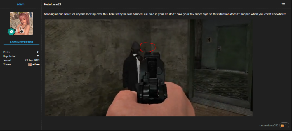 so when this guy gets perma banned for obviously being a blatant hacker he gets a chance to send a screenshot / screenshare his shit but when I offer to rundown ALL of my shit aint no one care https://medal.tv/games/garrys-mod/clips/ibXSmmdtlLaprva3o1 point