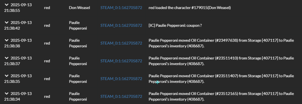 I'm not sure how you don't see your ban as justified so I will break it down- - You stole 8 barrels of oil from another player which is about $25,200 in profit. right after stealing the oil you switched chars. You are not giving the affected player the chance to react accordingly. That is char abuse and failure to RP. - You where pulled into a sit and the affected player decided he wanted to continue the RP and have his chance to PK your char for stealing from him. Yummeko stepped in for the PK and we watched over the interaction. During that time you took damage. Called 911 and then switched chars once again after already being told this is a bannable offense. - You switched Chars a few times and even on the other hovered around the interaction after calling the cops on the original char. - This all leads to my ban of Not Intending to roleplay given the multiple char switching, Char abuse since switching is how you avoided getting PKed, and Leaving to avoid role play when you knowingly where put back for an interaction that you purposefully avoided by switching chars.