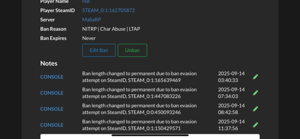 Follow format Your Character or Steam Name: Your SteamID (Click to retrieve): Your Discord ID#: Reason for ban: Length of ban: Reason for appeal (dispute/apology): Why should you be unbanned? Additional Information (images, videos, etc):